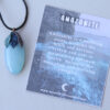 The “Out of the Blue” Collection is a series of Autumn gemstone pendants uniquely handcrafted. Each Crystal is has its beneficial properties written on the card that comes with it.