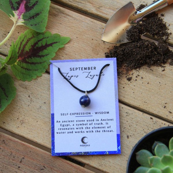 Black adjustable necklace & information card on the properties of the gemstones are included.